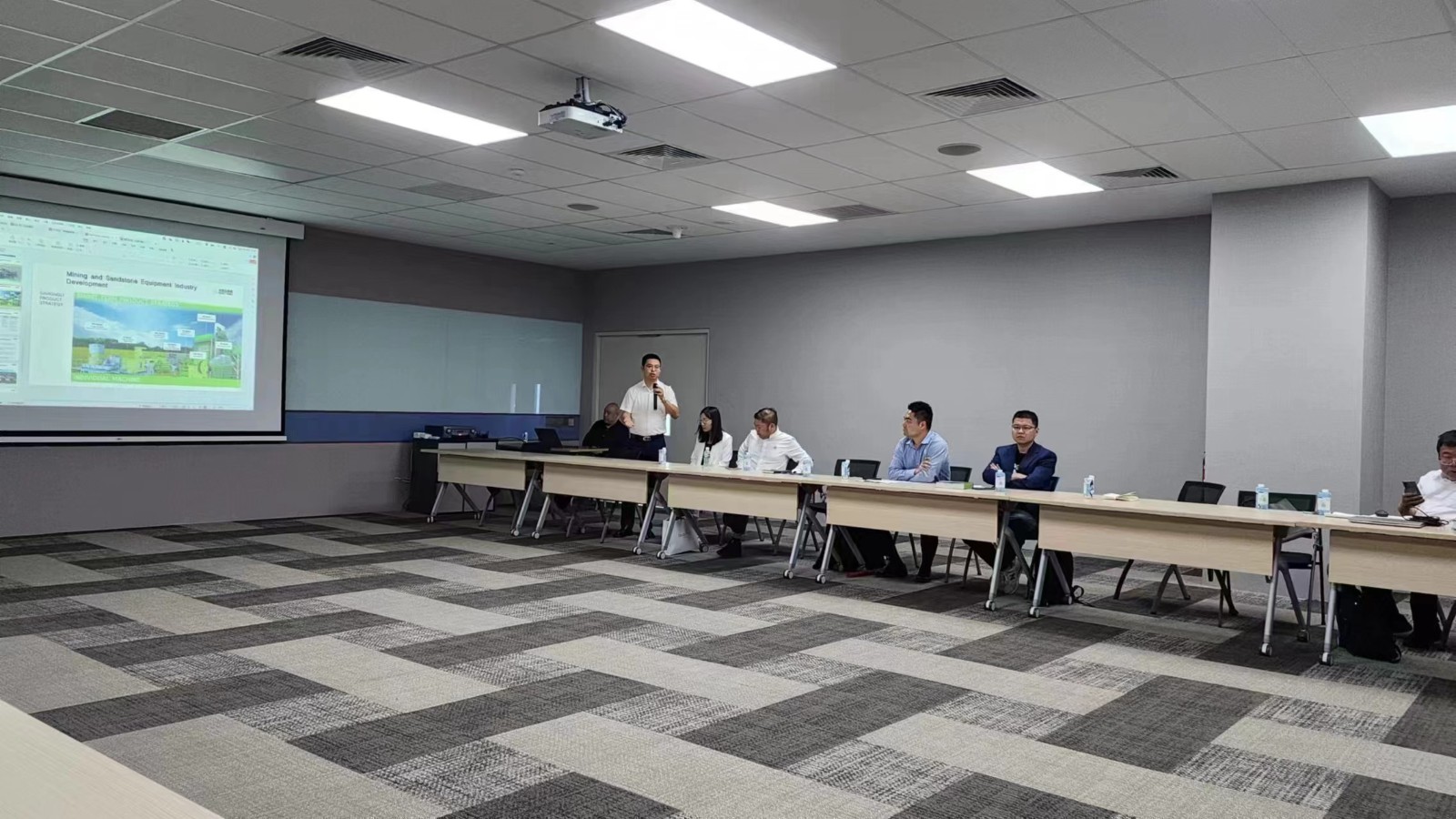 為期八天的考察之行,考察團(tuán)成員受邀參加了“馬中綠色環(huán)保礦山經(jīng)驗(yàn)交流會(huì)”。會(huì)上,來自馬來西亞采石協(xié)會(huì)14個(gè)砂石生產(chǎn)會(huì)員參會(huì),大宏立公司作為考察團(tuán)成員代表在會(huì)上作了主題為“中國(guó)綠色礦山前景和機(jī)制砂市場(chǎng)運(yùn)用”的經(jīng)驗(yàn)分享。期間,還與馬來西亞砂石協(xié)會(huì)、新加坡砂石公會(huì)、馬六甲砂石分會(huì)、柔佛州砂石協(xié)會(huì)以及當(dāng)?shù)厣笆橇稀⒒炷翞r青、建筑建材行業(yè)巨頭進(jìn)行了深入的探討、交流。