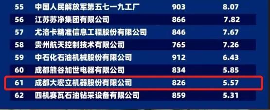 榜單顯示,四川共有41個(gè)品牌入圍,成都大宏立機(jī)器股份有限公司,以品牌強(qiáng)度826、品牌價(jià)值5.57億元位居機(jī)械設(shè)備制造類第61位。