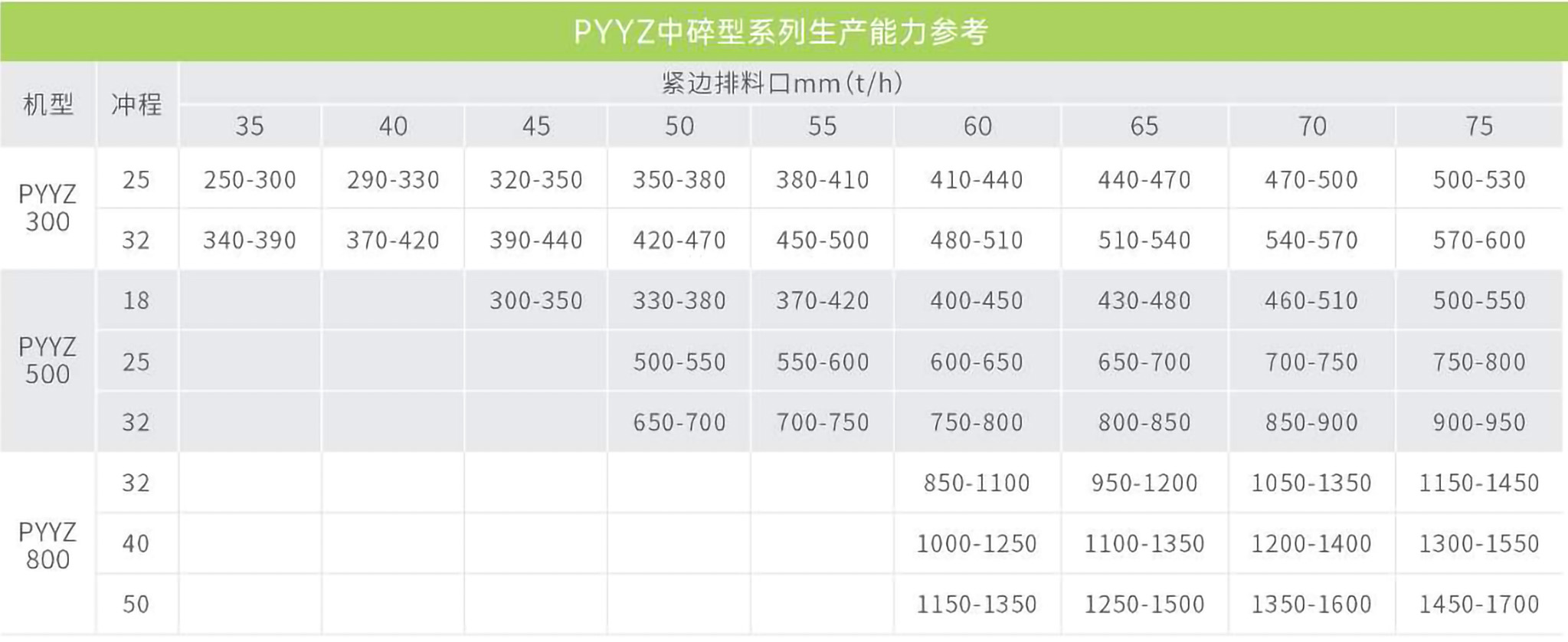 PYYZ中碎型系列篩分粒度曲線: