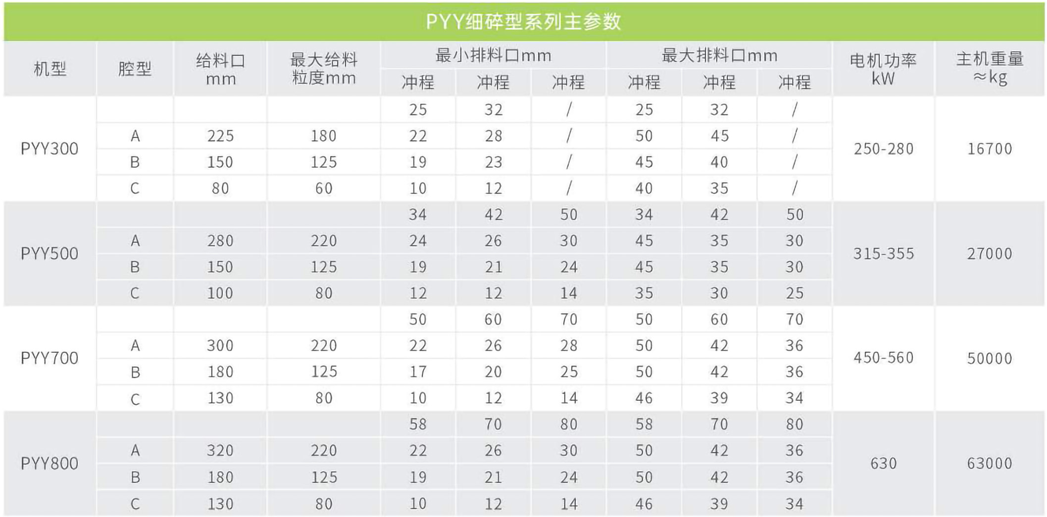 PYY系列單缸液壓圓錐破碎機(jī)適用于大、中型砂石、礦石加工企業(yè),作礦石、巖石或巖基材料的二級、三級或四級破碎。適用范圍廣:可破碎較為堅(jiān)硬的巖石,同一主機(jī)通過更換襯板即可取得多種腔型,從而適應(yīng)各種應(yīng)用場合。中碎型擁有穩(wěn)定而較大的給料口,用于物料的二級破碎(甚至粗碎)。